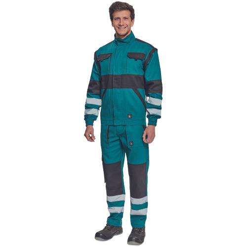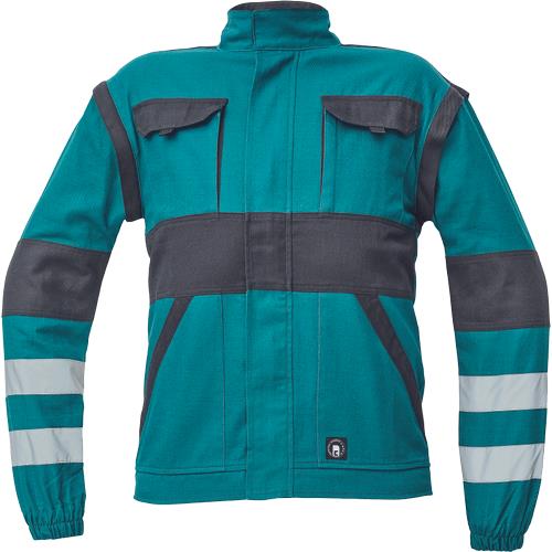 MAX NEO RFLX je kolekcia pracovného oblečenia vyrobená zo 100% bavlny, gramáž 260 g/m2, obohatená o našité reflexné pásy na rukávoch v šírke 5cm. Bunda 2v1 znamená že sa dá nosiť aj ako vesta.