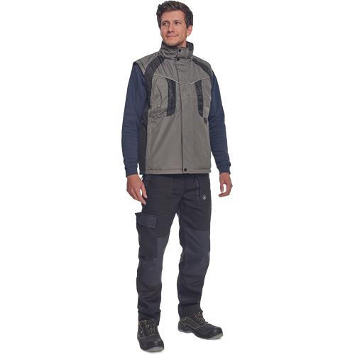 Zateplená nepremokavá vesta. Podlepené švíky, sťahovacia šnúrka v spodnom leme, vstup pre strojové vyšívanie.