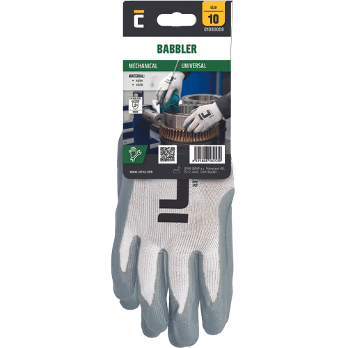 Pracovné rukavice BABBLER sú vyrábané pletením a sú bezšvové. Vyrobené sú z nylonu s vrstvou mikroporézneho nitrilu v dlani a na prstoch.
