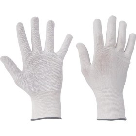 Bezšvové rukavice z polyesteru s PVC terčíkmi v dlani. Pružná manžeta.