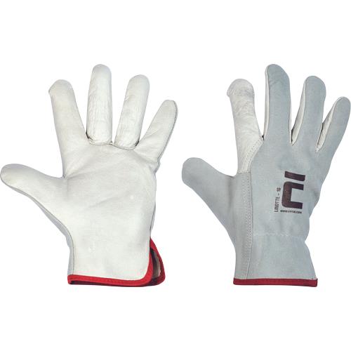 Šitá celokožená rukavica, jemná hovädzia lícovka v dlani a na prstoch, vrátane ukazováka z vrchu. Hovädzia štiepená koža na chrbte rukavice.